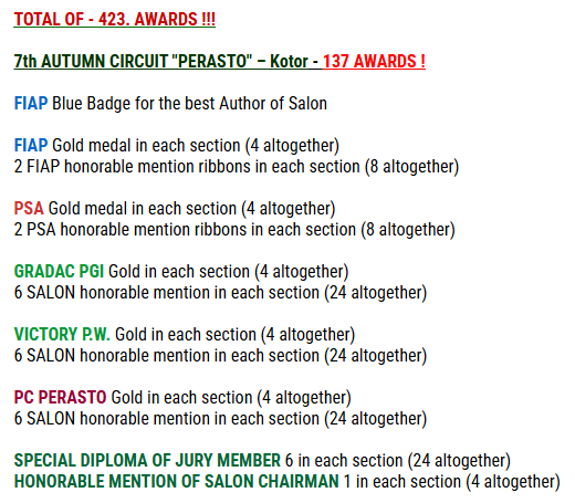 1、PSA、FIAP、GAP、GPU金牌、银牌、铜牌、勋带奖及各种荣誉奖等