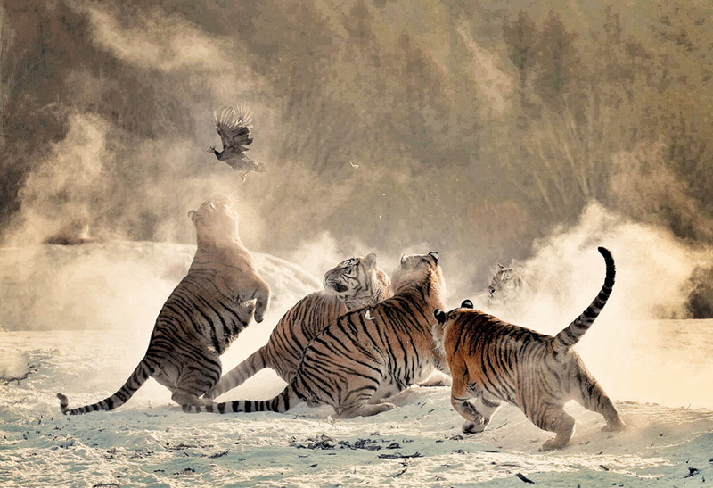 邹本良《Birds play Tigers》彩色自由组HM勋条奖